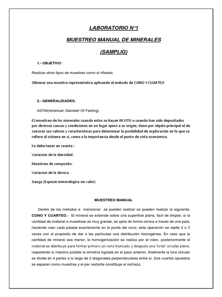 MUESTREO MANUAL DE MINERALES