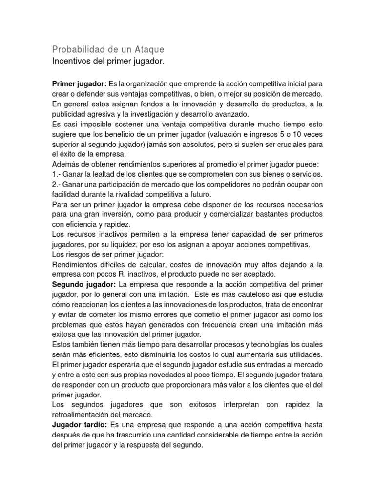 El primer jugador esperara que el segundo jugador estudie sus entradas al mercado