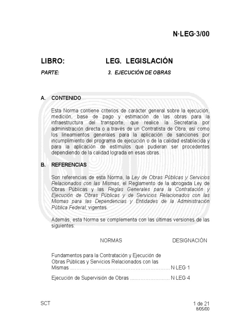 Son referencias de esta Norma, la Ley de Obras Pblicas y Servicios