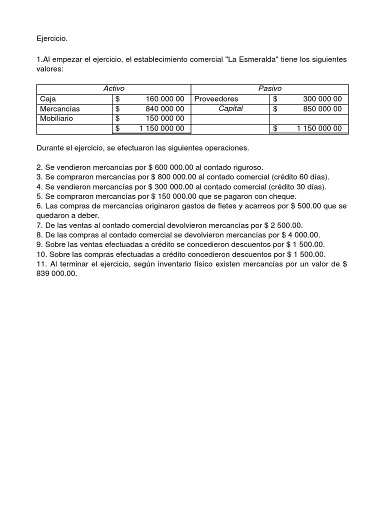 1.Al empezar el ejercicio, el establecimiento comercial "La Esmeralda" tiene los siguientes