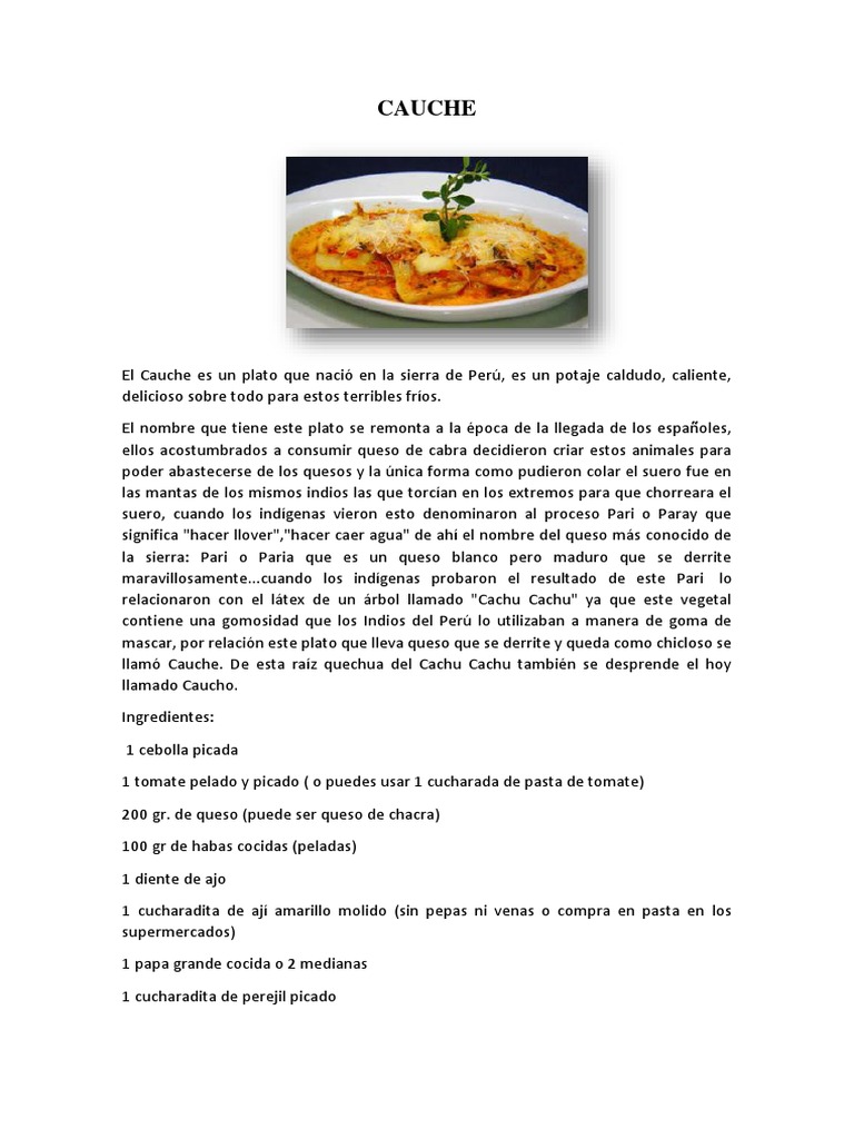 El Cauche es un plato que naci en la sierra de Per, es un potaje caldudo, caliente,