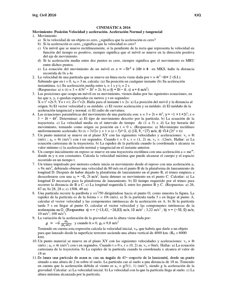 aceleracin tangencial y normal. e) El radio de curvatura.