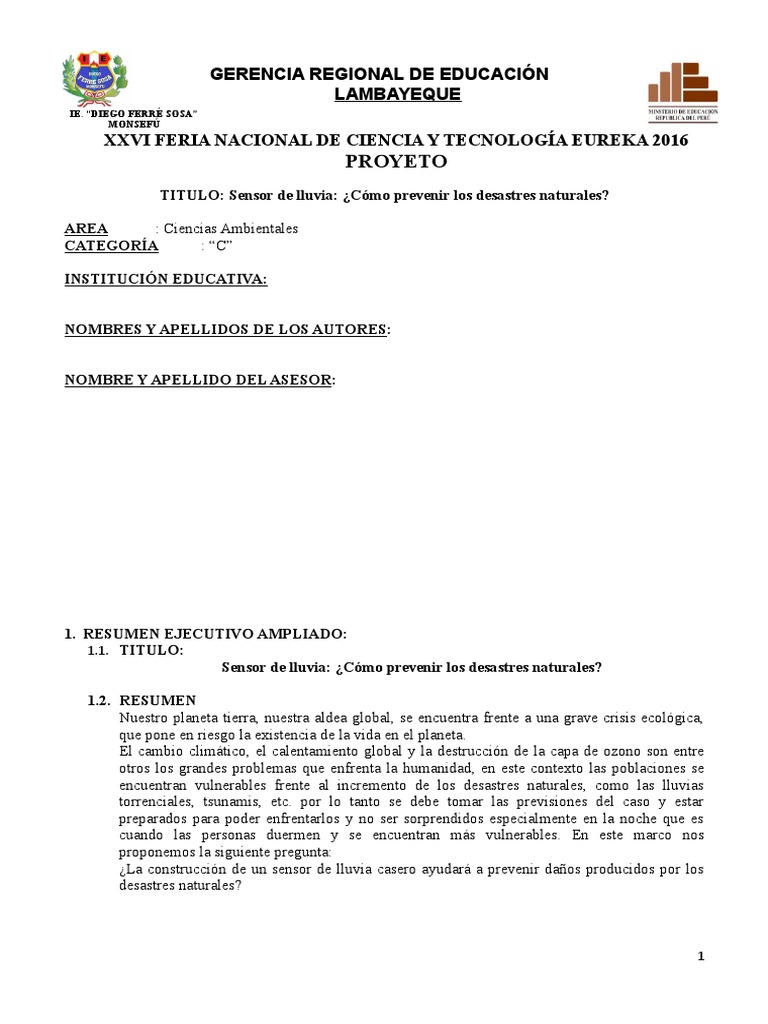 Nuestro proyecto cientfico denominado Sensor de lluvia: Cmo prevenir los desastres