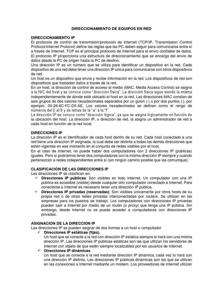 DIRECCIONAMIENTO DE EQUIPOS EN RED