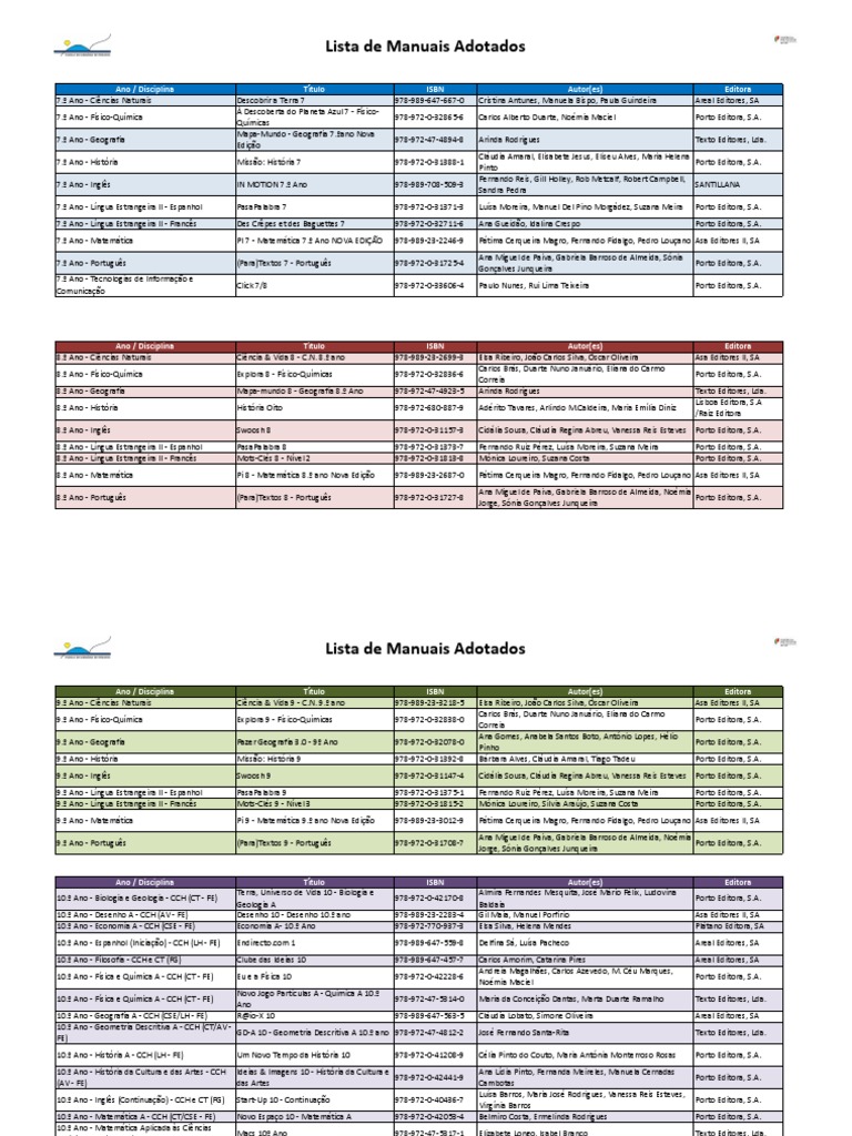 Lista de Manuais Adotados