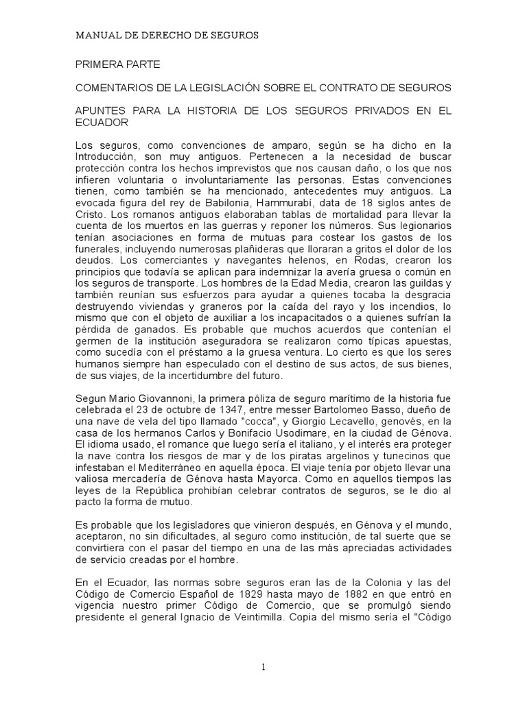En el Ecuador, las normas sobre seguros eran las de la Colonia y las del