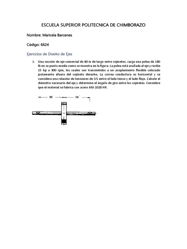 1. Una seccin de eje comercial de 60 in de largo entre cojinetes, carga una polea de 180