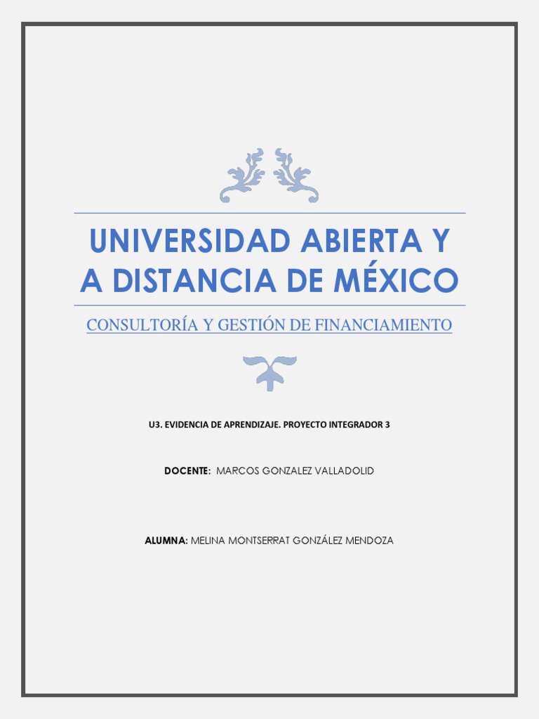 UnADM, Consultora y gestin del financiamiento Unidad 3. Ejecucin