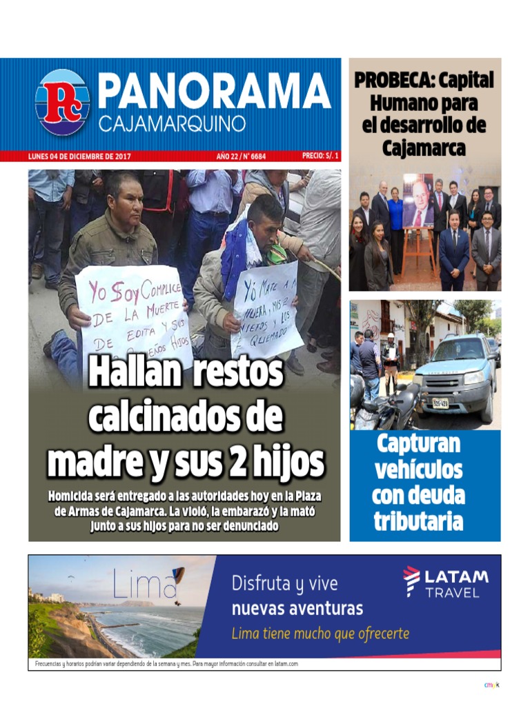 4 PANORAMA CAJAMARQUINO Cajamarca, lunes 04 de diciembre de 2017