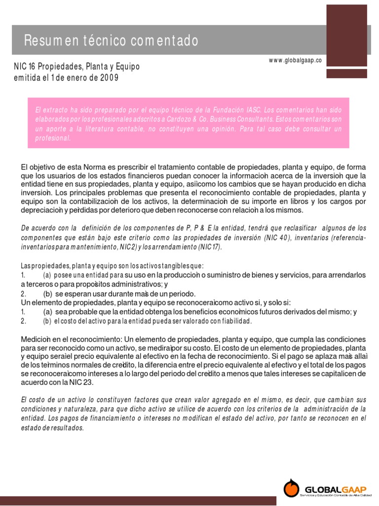 inventarios para mantenimiento, NIC 2) y los arrendamiento (NIC 17).