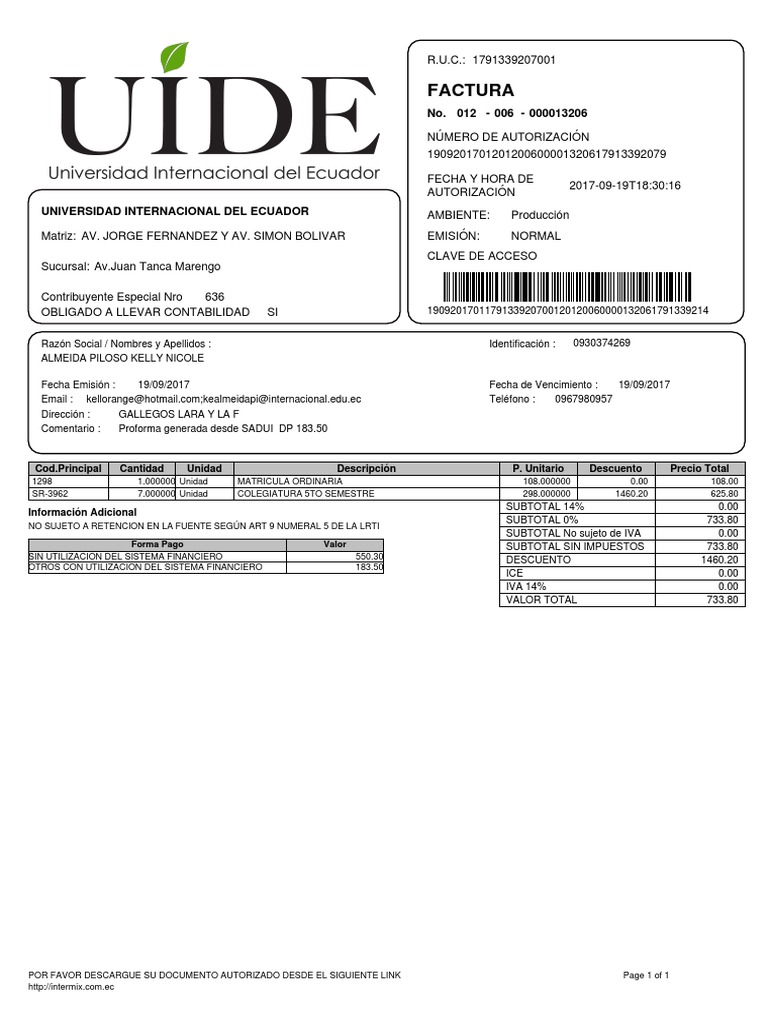 1298 1.000000 Unidad MATRICULA ORDINARIA 108.000000 0.00 108.00