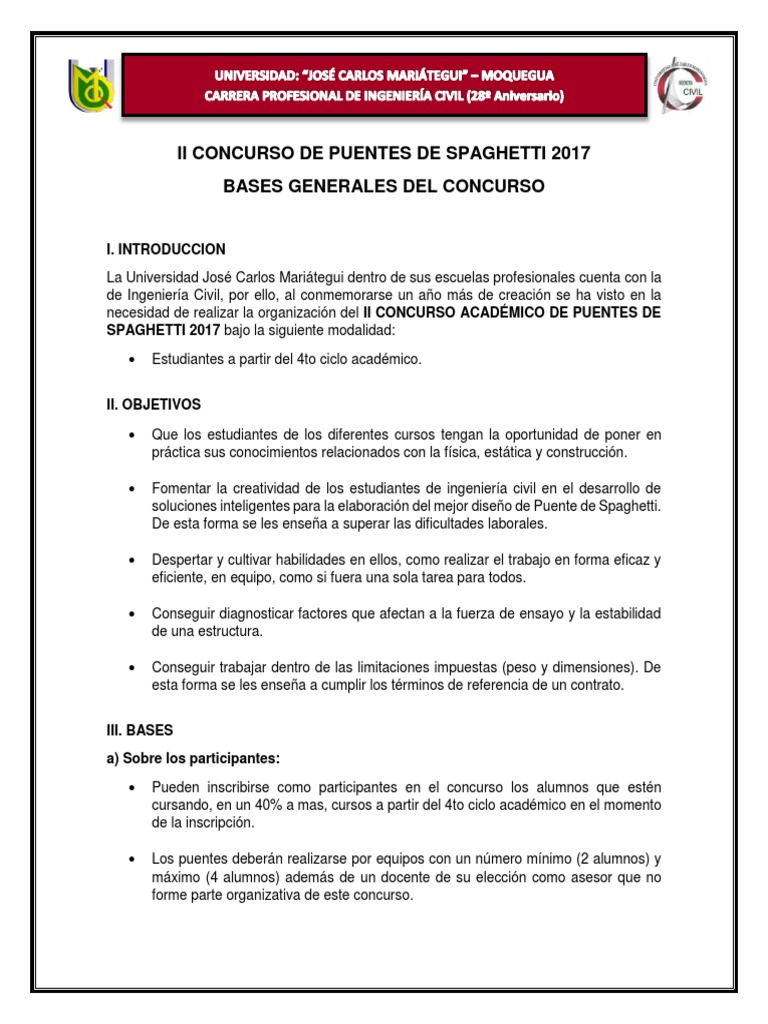 necesidad de realizar la organizacin del II CONCURSO ACADMICO DE PUENTES DE