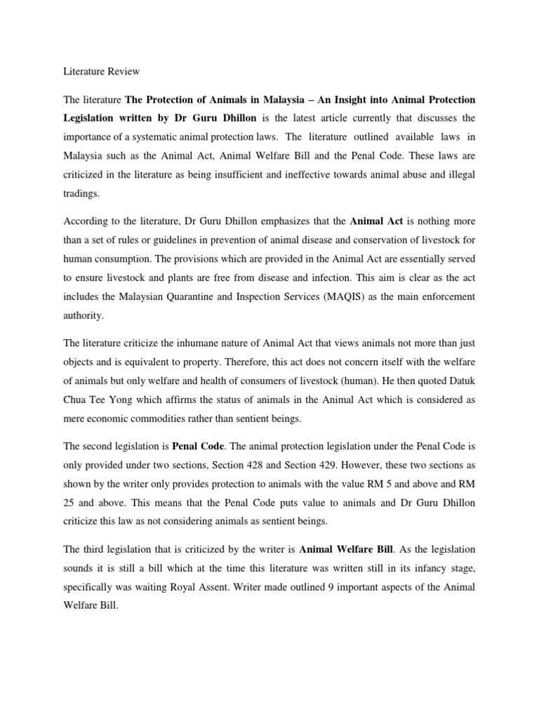 importance of a systematic animal protection laws. The literature outlined available laws in
