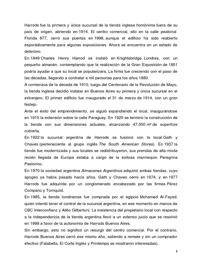 en 1998 a favor de la autonoma de Harrods Buenos Aires.