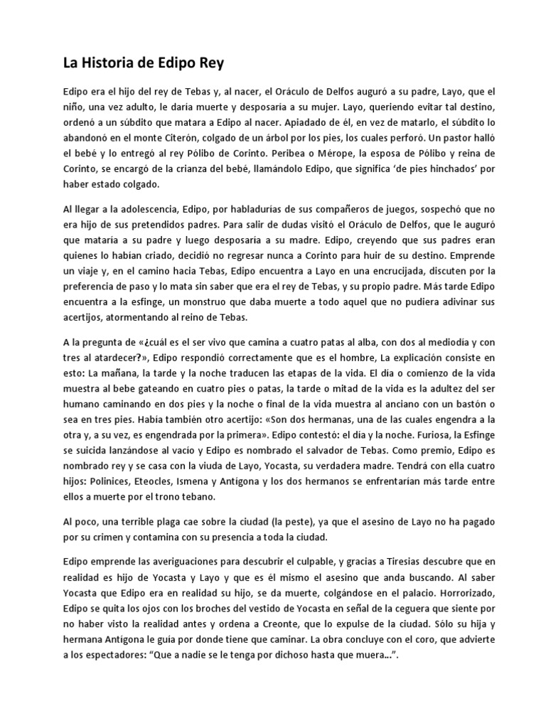 que matara a su padre y luego desposara a su madre. Edipo, creyendo que sus padres eran