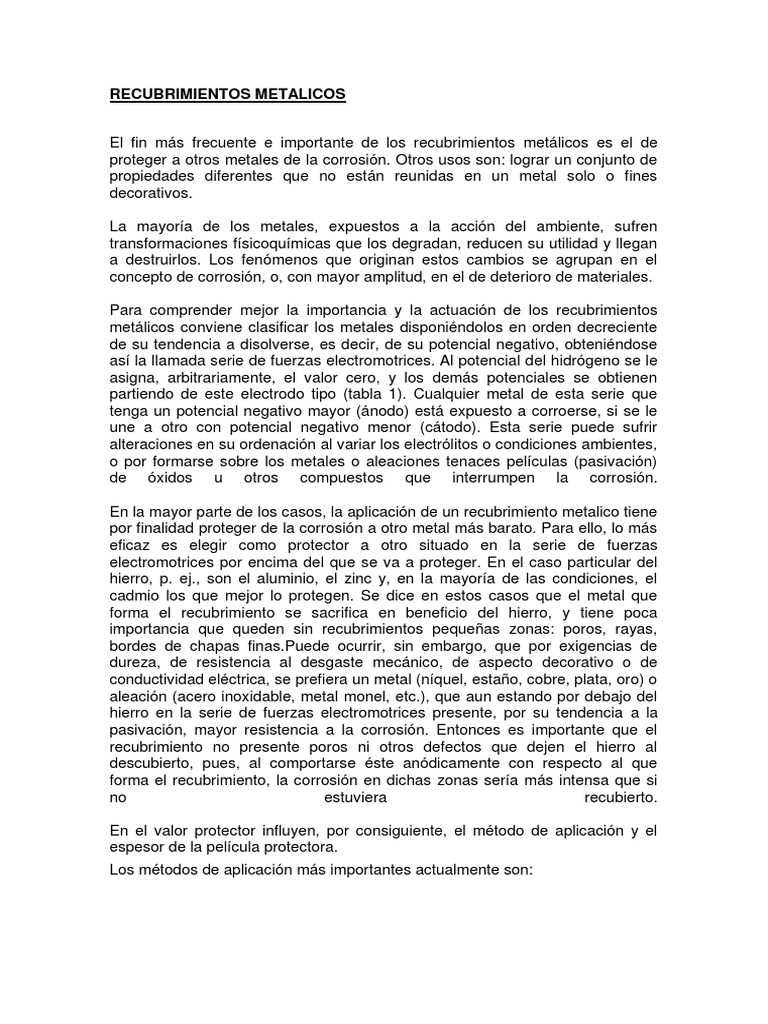 El fin ms frecuente e importante de los recubrimientos metlicos es el de