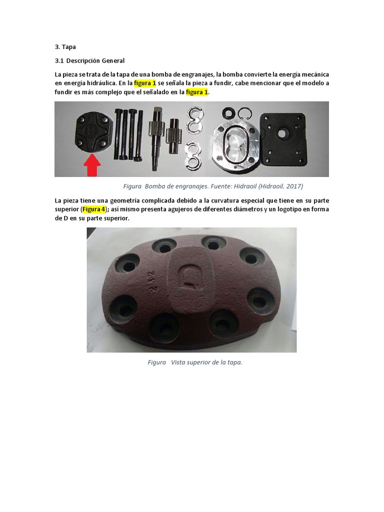 La pieza se trata de la tapa de una bomba de engranajes, la bomba convierte la energa mecnica