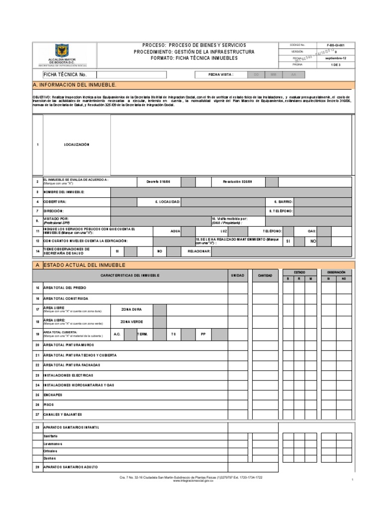 FICHA TCNICA INMUEBLES FECHA: septiembre-12