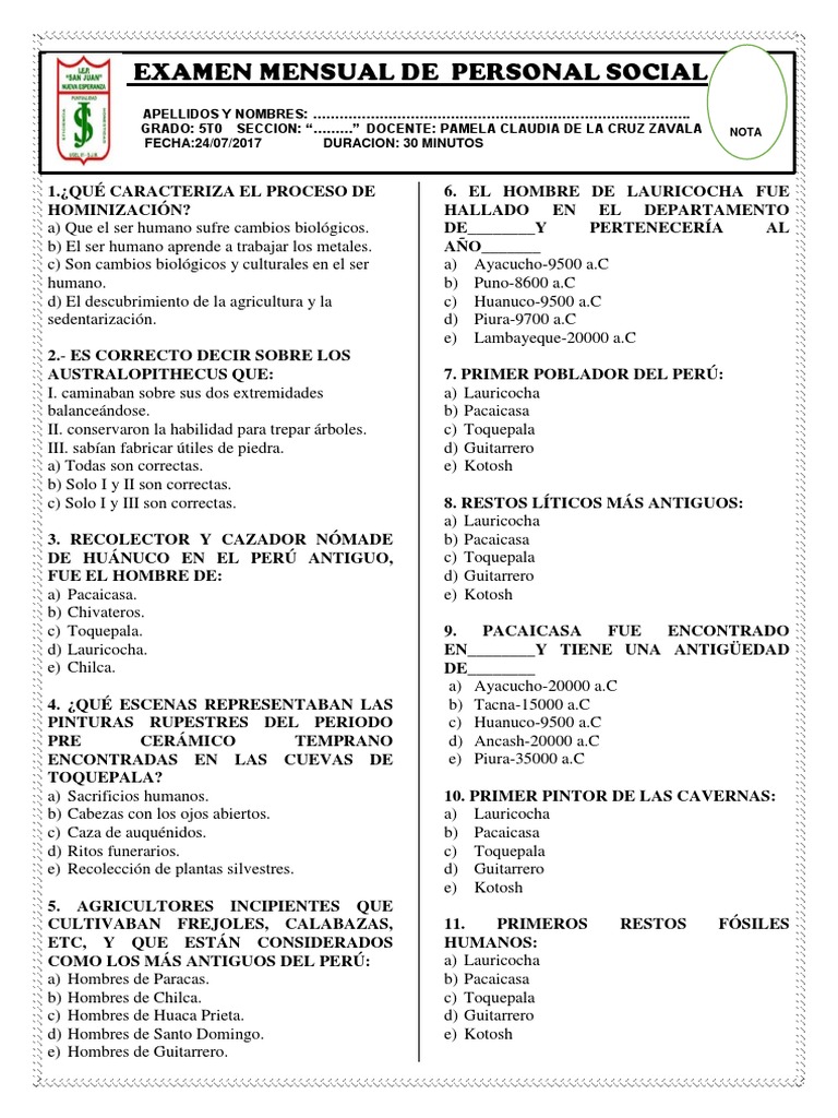 EXAMEN MENSUAL DE PERSONAL SOCIAL