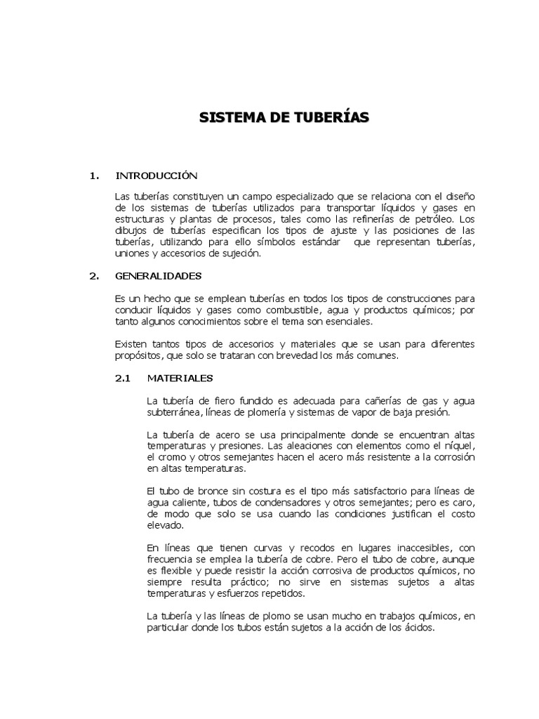 de los sistemas de tuberas utilizados para transportar lquidos y gases en