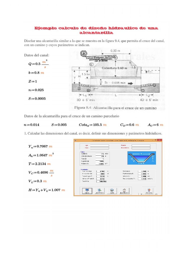 Disear una alcantarilla similar a la que se muestra en la figura 9.4, que permita el cruce del canal,