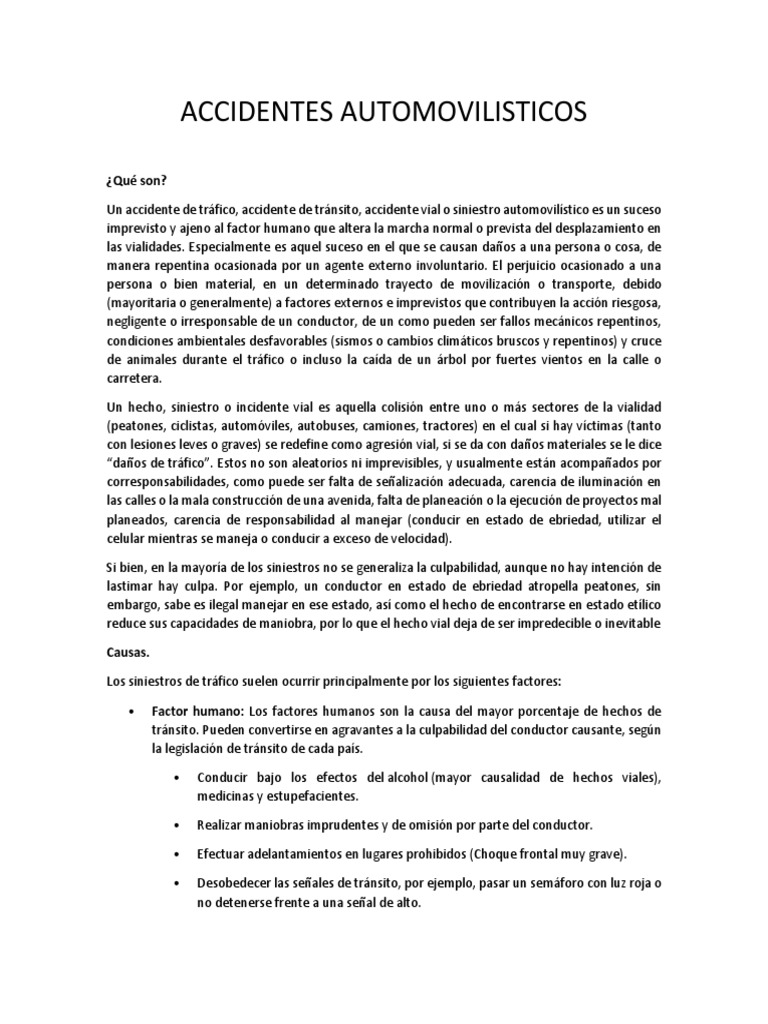 Los siniestros de trfico suelen ocurrir principalmente por los siguientes factores: