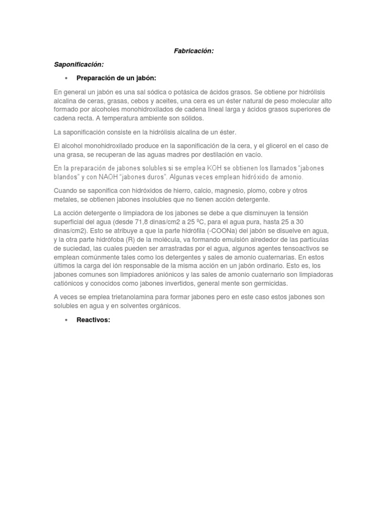 blandos y con NAOH jabones duros. Algunas veces emplean hidrxido de amonio.