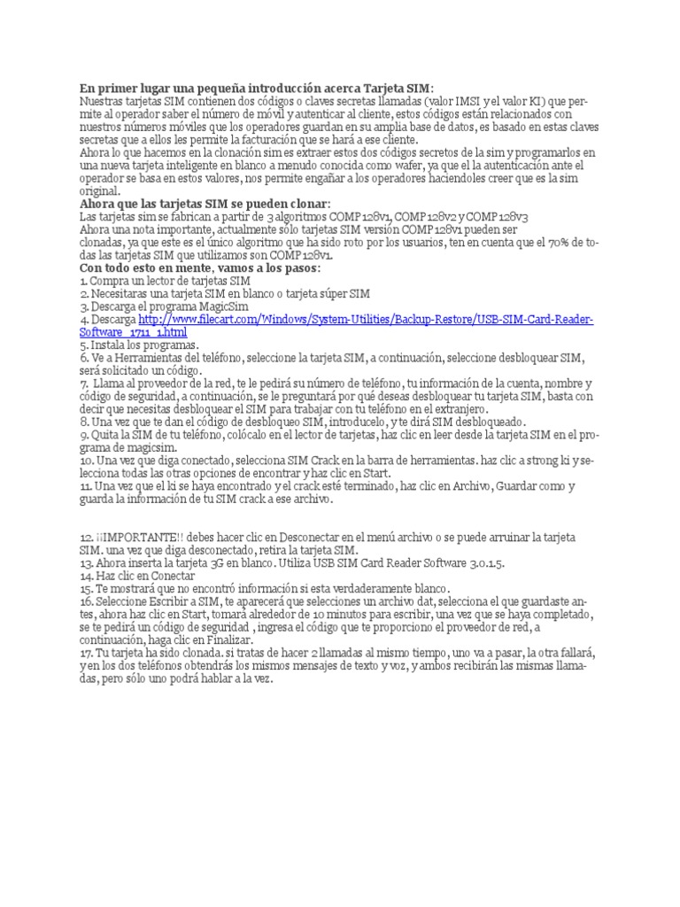 Ahora una nota importante, actualmente slo tarjetas SIM versin COMP128v1 pueden ser