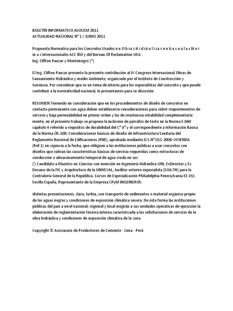 recomendaciones tcnicas internacionales para el diseo de concreto en contacto con agua del
