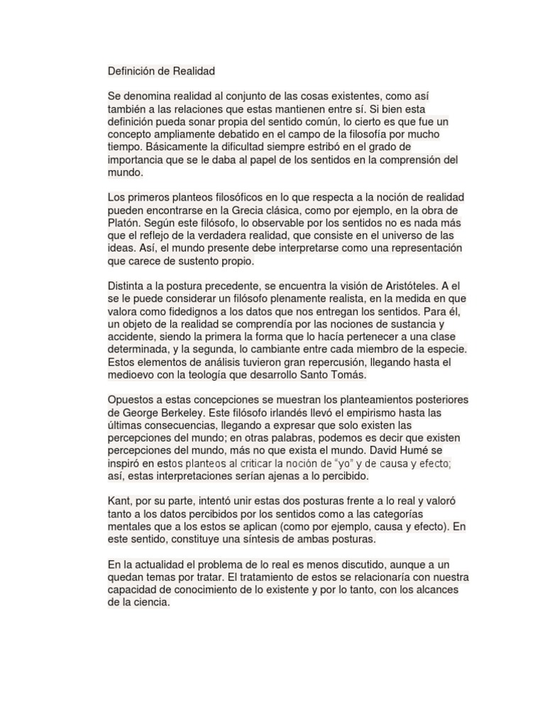 era imposible llegar a la realidad, que esta no exista y si acaso fuera