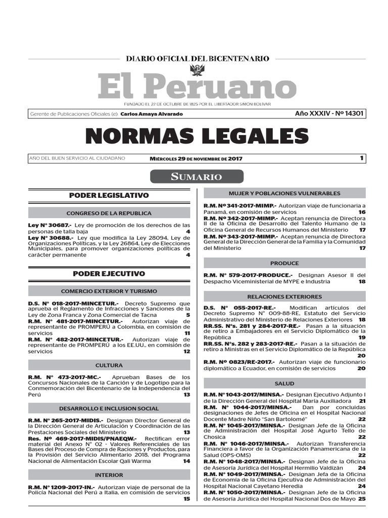 88 NORMAS LEGALES Mircoles 29 de noviembre de 2017 / El Peruano