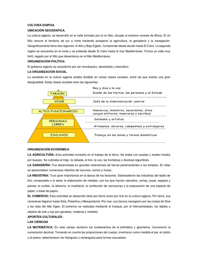 La cultura egipcia, se desarroll en el valle formado por el ro Nilo, situado al extremo noreste de frica. El ro