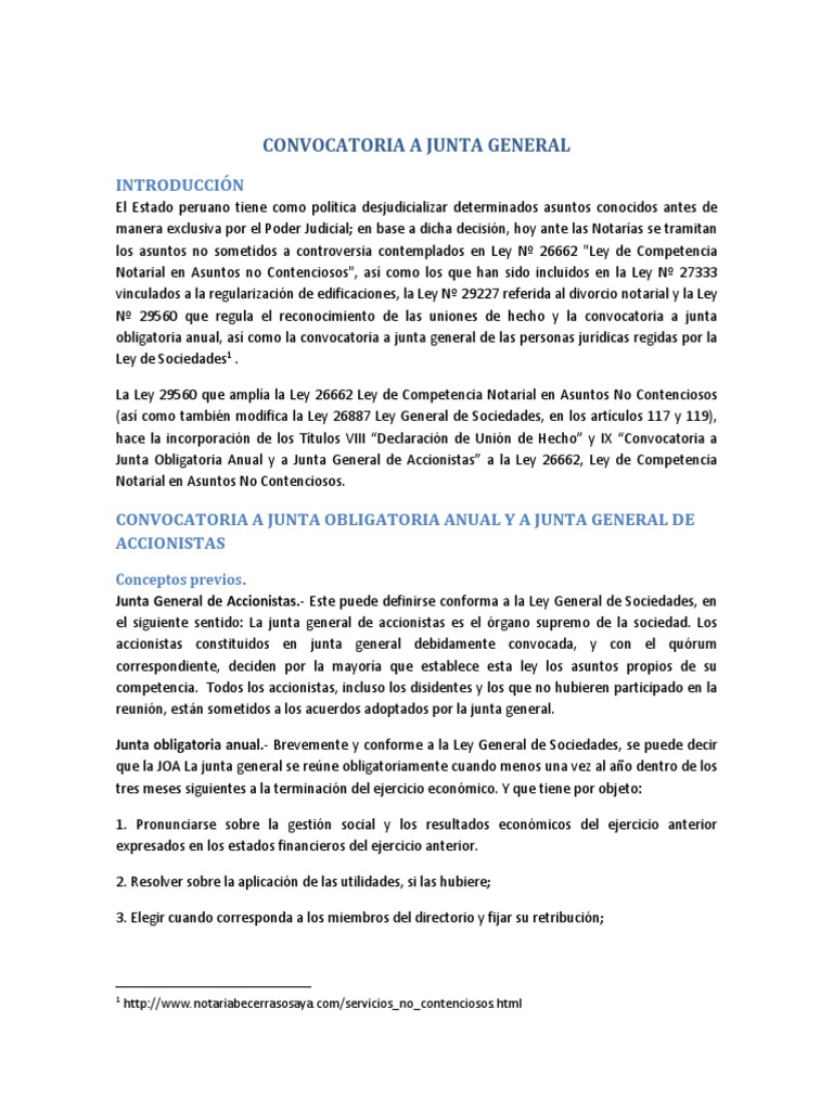 obligatoria anual, as como la convocatoria a junta general de las personas jurdicas regidas por la