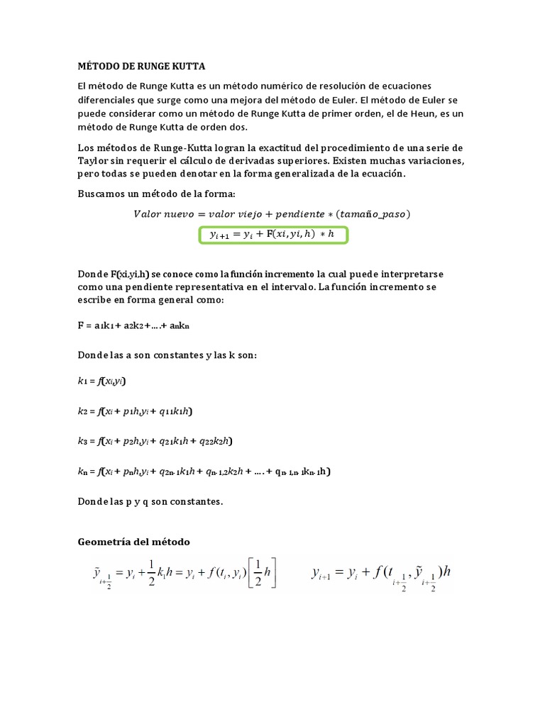 El mtodo de Runge Kutta es un mtodo numrico de resolucin de ecuaciones