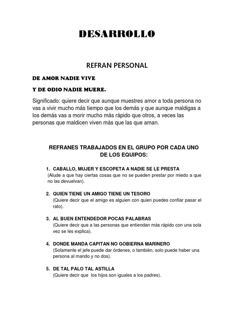 REFRANES TRABAJADOS EN EL GRUPO POR CADA UNO