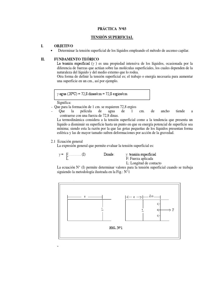 La ecuacin N (I) permite determinar valores para la tensin superficial cuando se trabaja