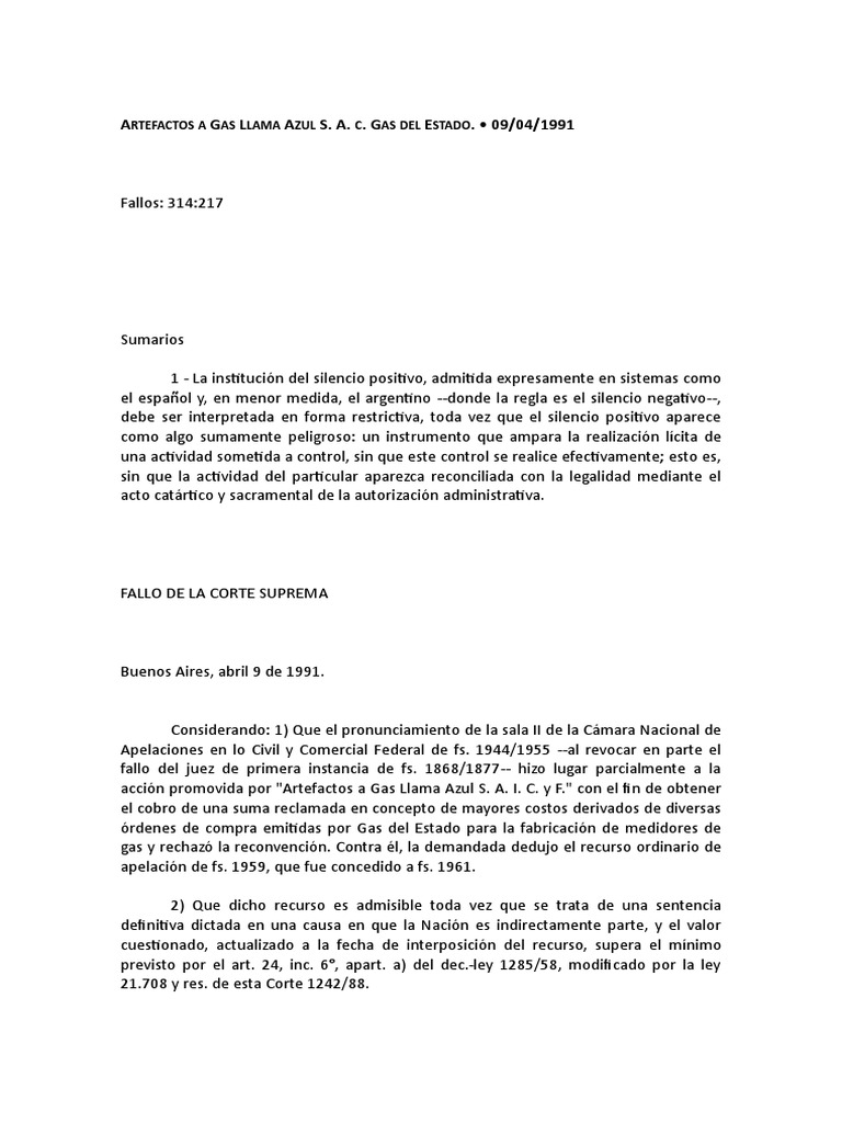 originales, las que disponan que de no pronunciarse Gas del Estado dentro de los