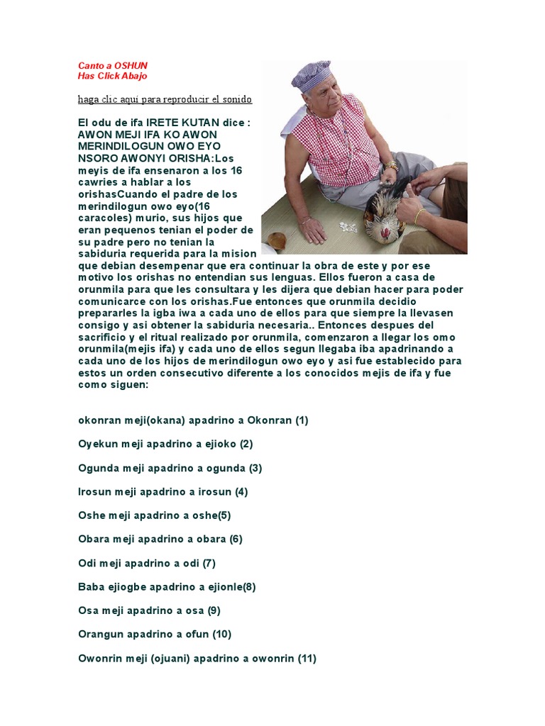 las escrituras sagradas de ifa a las cuales tiene acceso. Dejemos las