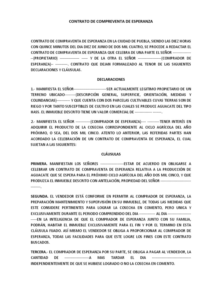 CONTRATO DE COMPREVENTA DE ESPERANZA