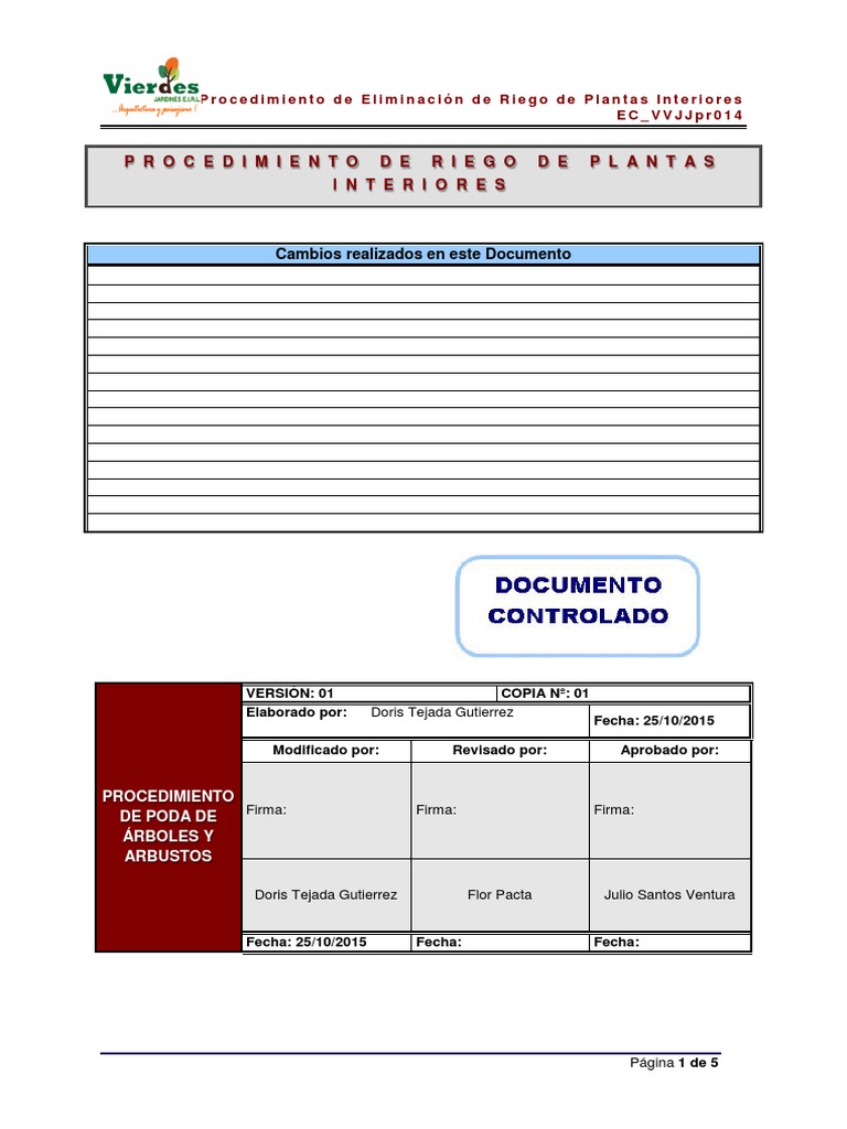 Este procedimiento aplica a todo el personal de VIERDES JARDINES E.I.R.L. que