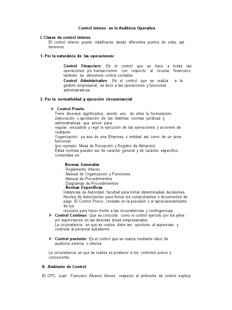 I. Clases de control interno
