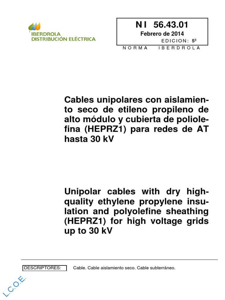Esta norma es aplicable a los cables unipolares de AT hasta 30 kV tipo