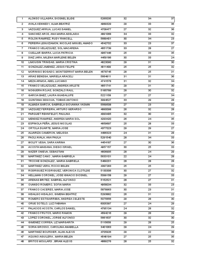 3 VAZQUEZ ARRUA, LUCAS DANIEL 4708477 27 32 36