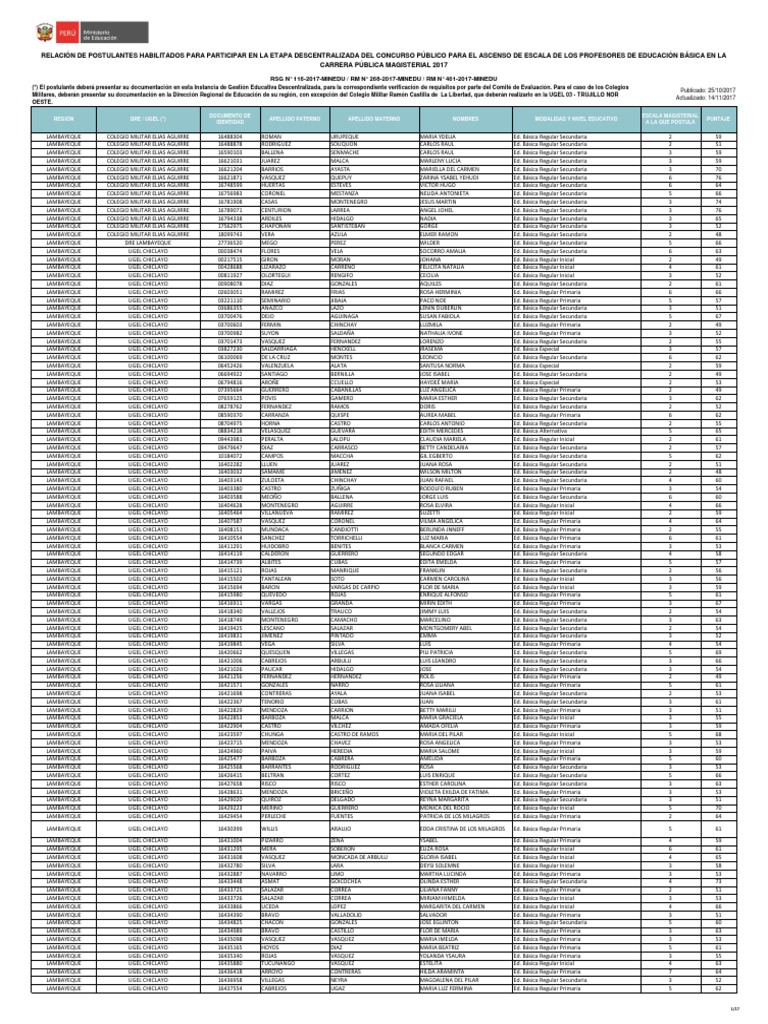 LAMBAYEQUE UGEL LAMBAYEQUE 27569162 BUSTAMANTE VALLEJOS ABEL Ed. Básica Regular Primaria 5 60