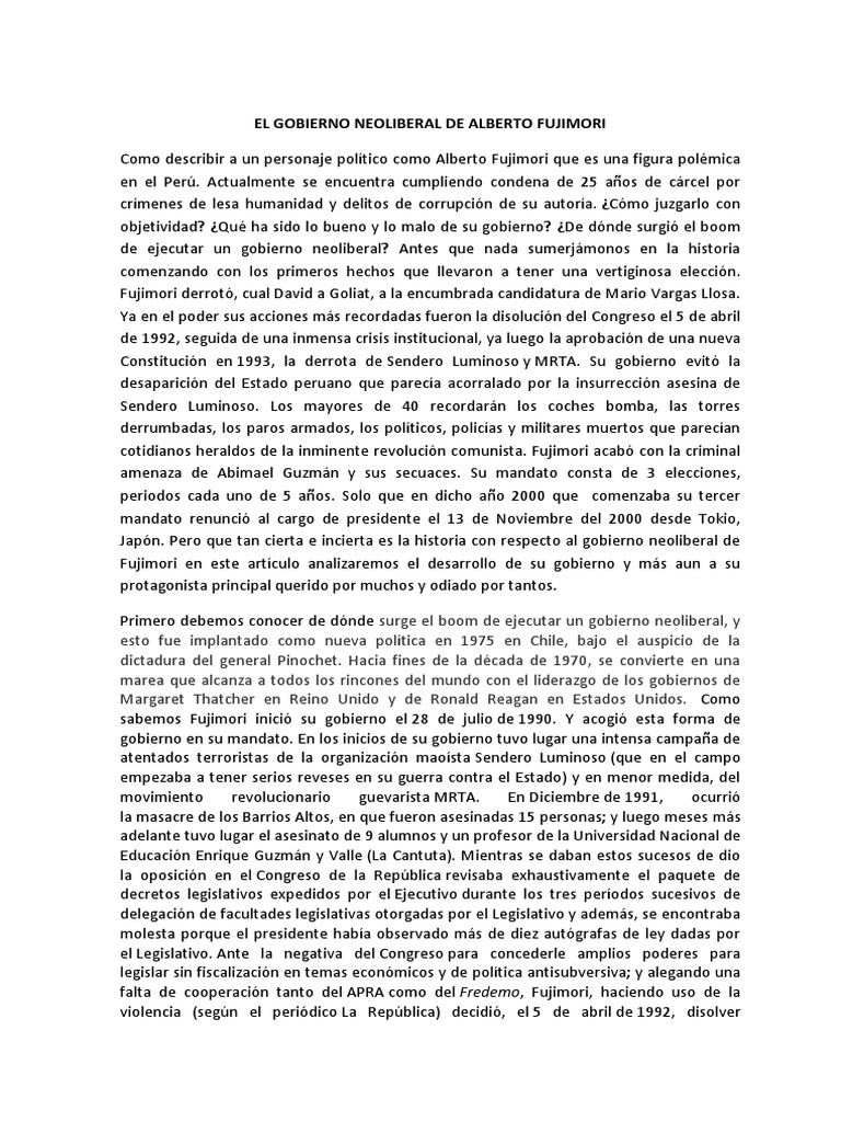 EL GOBIERNO NEOLIBERAL DE ALBERTO FUJIMORI