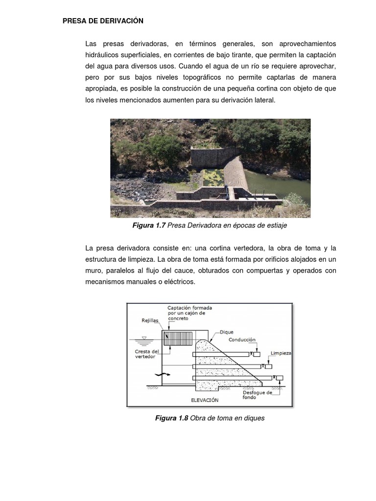 Las presas derivadoras, en términos generales, son aprovechamientos