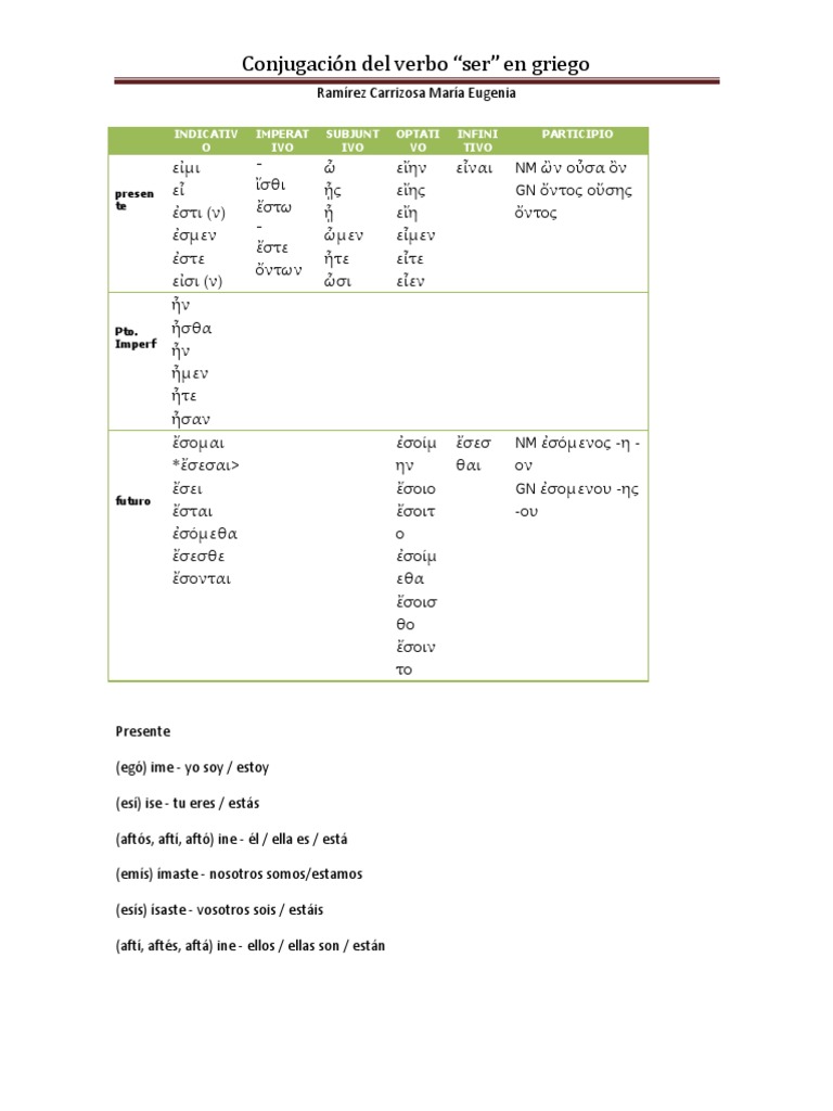 Conjugación del verbo “ser” en griego
