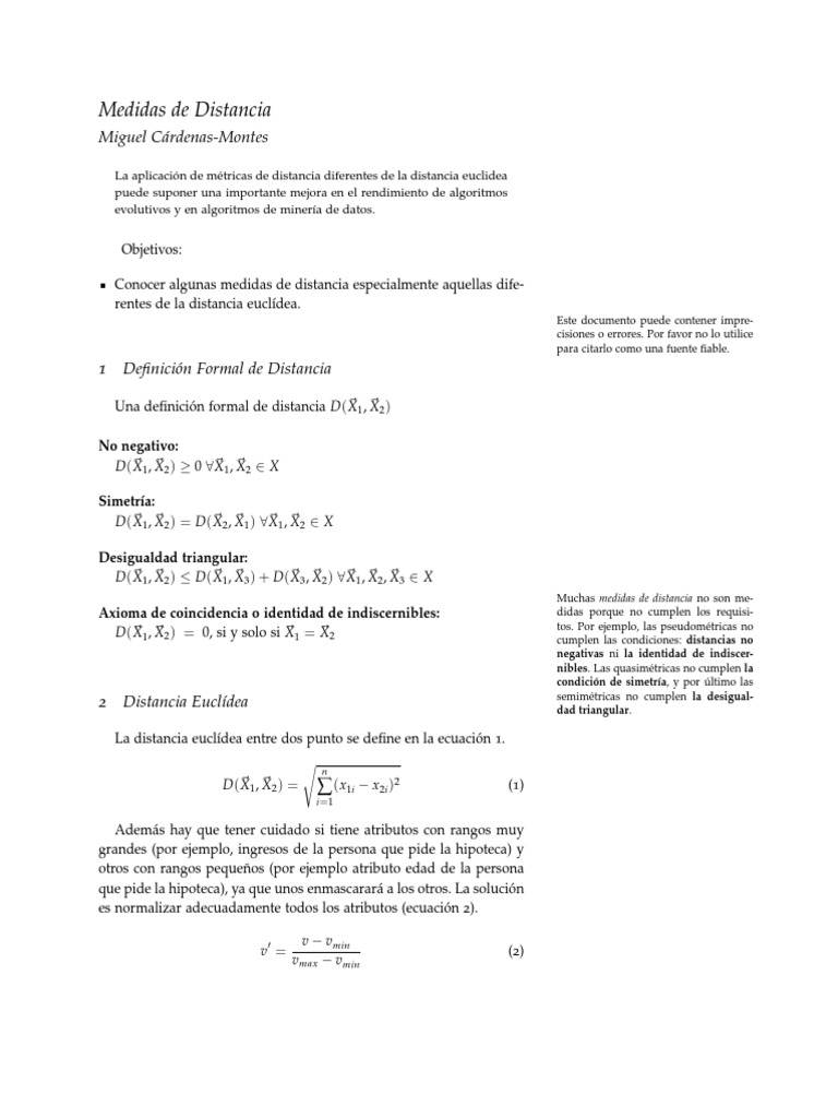 La distancia euclídea entre dos punto se define en la ecuación 1.