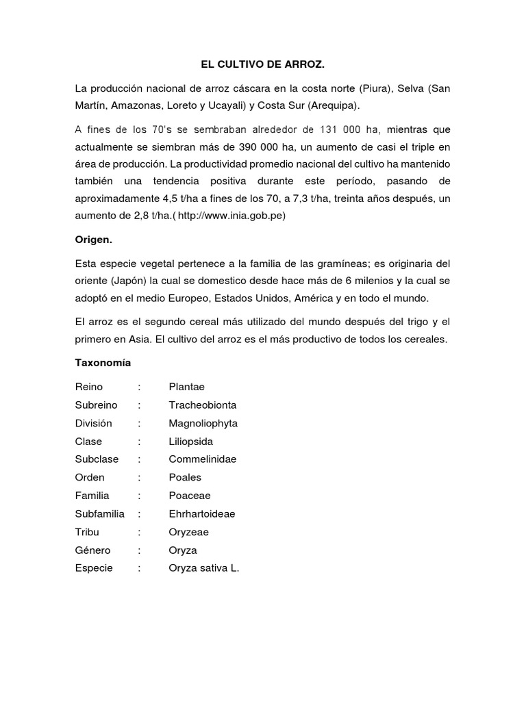 El arroz (Oryza sativa L.) ocupa el segundo lugar entre los cereales más