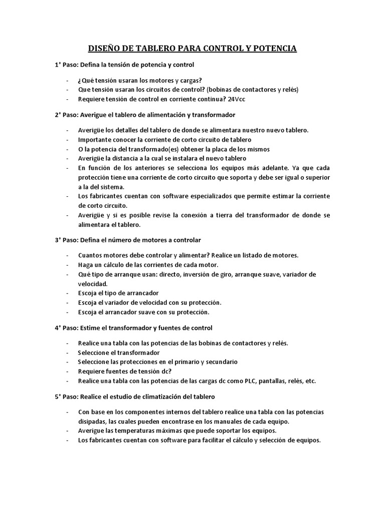 - Con base en el listado de motores y cargas estime la potencia total del tablero.